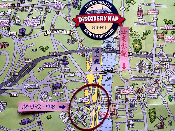 例の橋を越えニューハンプシャー州に入り、潜水艦通りを右に曲がって、すぐ。