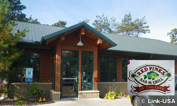 ラ・クロスのダウンタウンから北に約15km、オナラスカ湖(Lake Onalaska )の北岸にレッド パインズ バー&グリル(Red Pines Bar & Grill)というユニークなお店があり、ランチを食べに連れて行ってくださいました。