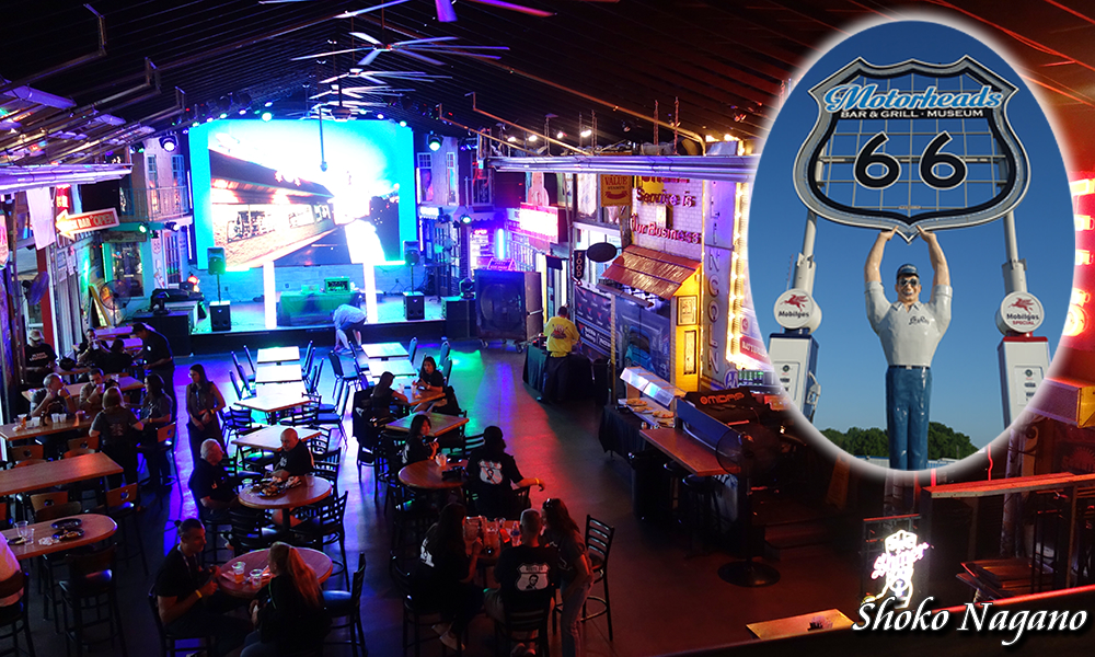 二日目の締めくくりは、ルート66の名物博物館兼レストラン「モーターヘッズ(Motorheads)」へ。